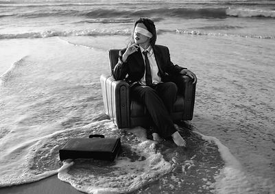 A obra confronta o conflito entre a vida profissional e a felicidade pessoal. A mulher vendada à beira-mar, simboliza uma vida inteira de cegueira, submersa no peso da rotina. Com este projeto, procuro inspirar as pessoas a encontrar a coragem de arriscar, lutar pelos seus verdadeiros sonhos e a abraçar um novo começo sem medo.